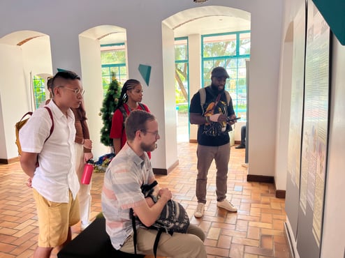 Kroc School students interacting with an exhibit at the Kigali Genocide Memorial